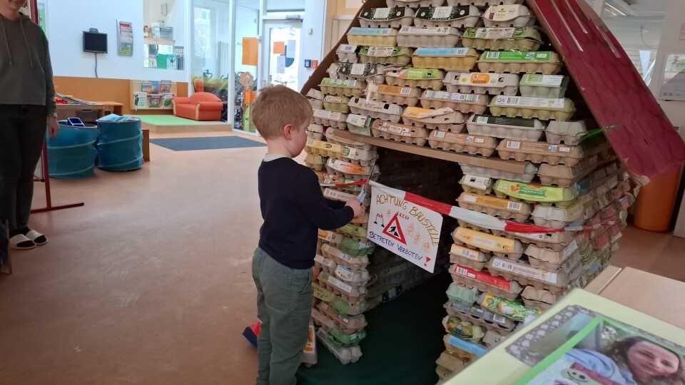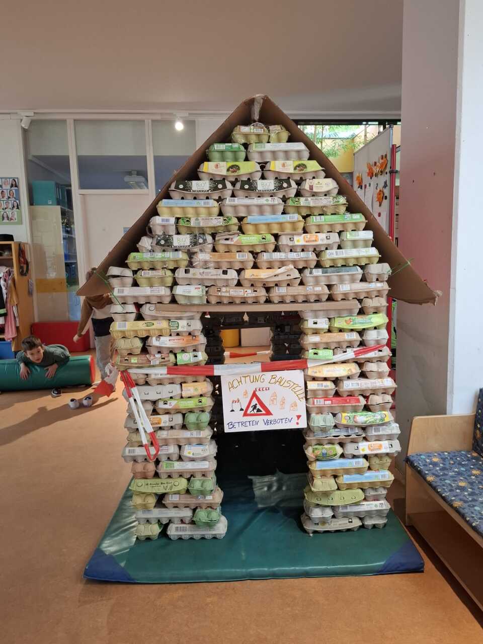 Um dieses Recht greifbar zu machen, bauten wir gemeinsam ein „Schutzhaus“ aus Eierkartons.